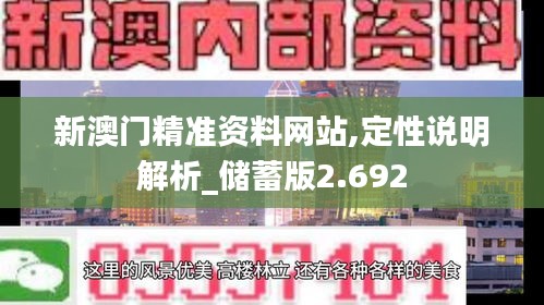 澳门,作为中国特别行政区,拥有独特的地理位置和丰富的文化底蕴,近年来在经济发展上取得了长足的进步。澳门的金融政策是支撑其经济发展的重要基石,这对于促进澳门的多元化发展,以及保障其国际金融地位至关重要。本文将对澳门金融政策进行深入解析,特别是对于新澳门精准资料网站,定性说明解析_储蓄版2.692的详细阐述,以期为读者提供有价值的信息和深刻的见解。
